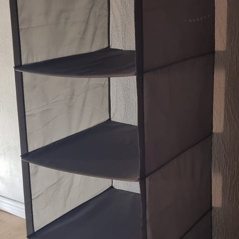 Grå og god oppbevaringsplass i hver hylle og "eske"