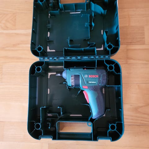 Pent brukt el. skrutrekker med lader, noen bits og forlenger