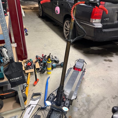 Momas S4 extreme sparkesykkel i svart farge. Komplett med fjernkontroll og lader. Har sluttet å fungere, så den som kjøper denne må feilsøke og fikse. Kjørte på kun en motor noen dager, så stoppet den helt.