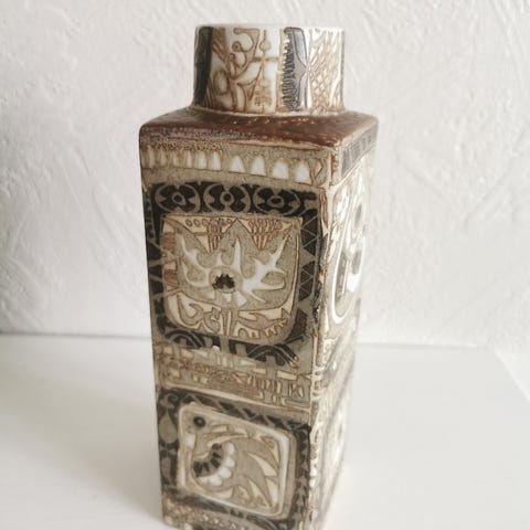 Vintage keramikk vase fra Royal Copenhagen, «Baca», designet av Nils Thorsson. Vasen er 19cm høy.
