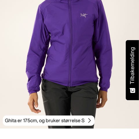 Svært pent brukt Arc'teryx Atom Hoody i str M. Kan fint passe en S også! Er i fargen Black Sapphire (mørkeblå). Selges da jeg har mange mellomlagsjakker. Nypris 2999,-