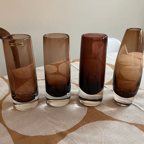 Hadeland Glassverk Glassvase brun klart glass fra 1960-tallet