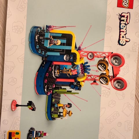 LEGO Friends konsert som inkluderer scene, mikrofon og piano, samt Lego Friends-figuren "Andrea". Obs! Den røde radioen på pianoet følger ikke med, ellers er alt godt bevart.