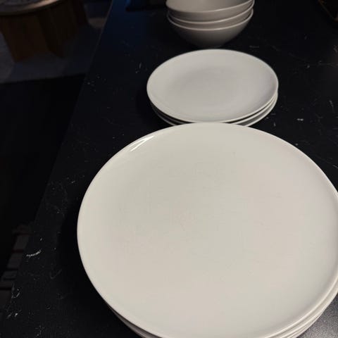 IKEA skåler med blått mønster rundt kanten. Tallerkenen er laget av keramikk og har en rund form. Passer til servering av mat.