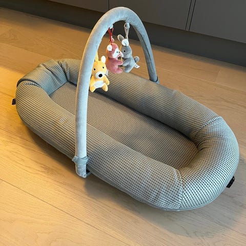 Selger pent brukt babynest mesh fra Yngri, i fargen beige/creme. Inkludert lekebøyle og myggnett.