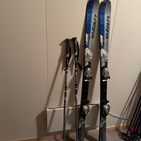 Brukt med litt slitasje under. Men gode ski til nybegynnere, mye ski igjen