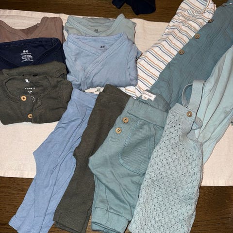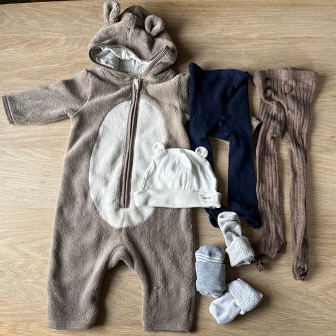 5 bukser, 9 bodys og en heldrakt