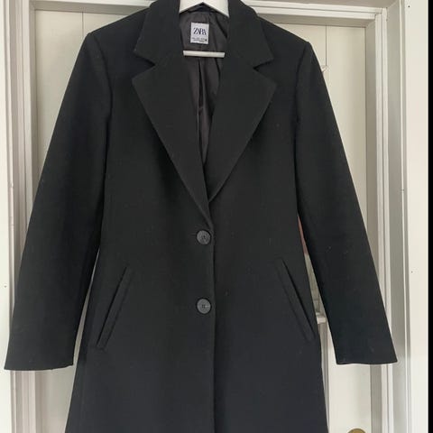 Zara kåpe med belte og krage i svart farge, størrelse S. Helt ny, med prislapp på. Opprinnelig pris 1199 kr. Er fra herreavdelingen, så en litt oversized small for dame.