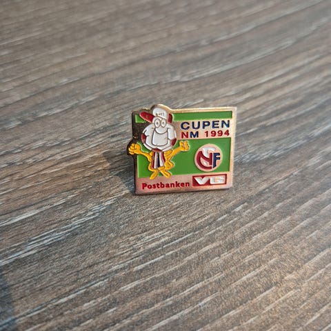 Selger ein unik og fargerik pakke med fire originale pins frå 90-talet – perfekt for samlarar av norsk nostalgi, bankhistorie og lokalidrett!