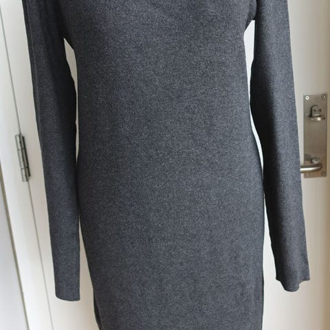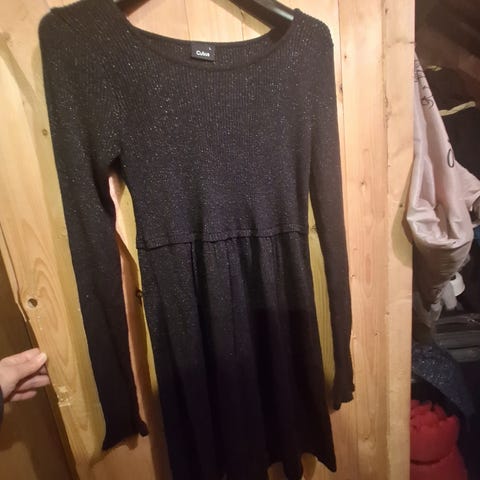 kjole, festkjole, glitterkjole, sort kjole, sølvglitter, Cubus, julebord, selskapskjole, langermet kjole, V-utringning, dameklær, str L
