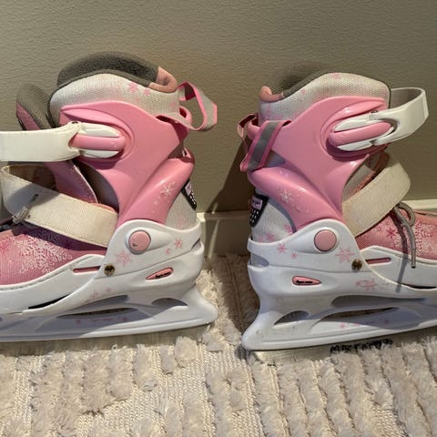 Bauer ishockeyskøyter for barn i størrelse 30. Skøytene er rosa og designet for barn som driver med ishockey.