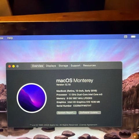 Batteriet ble skiftet for noen år siden. Den har noe bruksmerker og en liten bulk (se bilde). Ingenting av dette påvirker funksjonene til Macen. Selges da den ikke brukes lenger. Alt av original emballasje følger med, i tillegg får du med ladekabel og en sleeve.