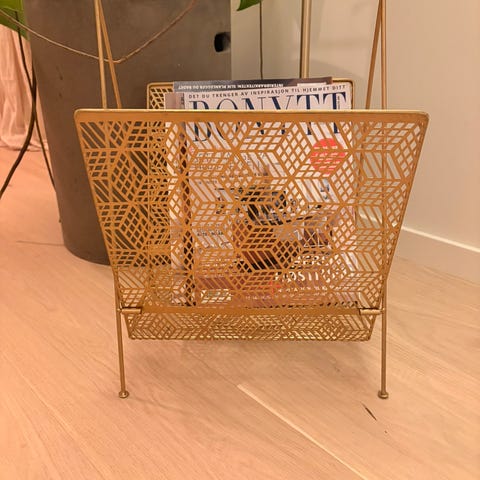 Magasinholder (80/90-talls) i pen stand. Kan hentes i Oslo eller sendes, da kommer porto (postens avgift)/emballasje i tillegg