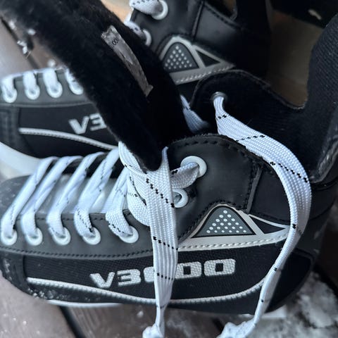 Bauer XLS barneskøyte for ishockey i størrelse 35. Skøyten har svart farge med rosa lisser og hvit knivholder. Tror kanskje de har vært på isen 2 ganger så veldig god stand. .