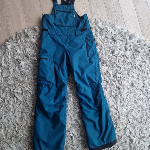 Nydelig Rema skibukse/vinterbukse i str. 164. Som ny og ingen feil. Blågrønn farge. Har avtakbare seler som festes med borrelås. Midjen har regulerbar og kan åpnes foran med trykknapp og glidelås. Sidene har to lommer med glidelås. Refleksdetaljer. Har praktiske snømansjetter med en smal elastisk kant med gummibelegg på innsiden. Foret og varm. Selges for 500kr. Prisen er ferdig prutet.
