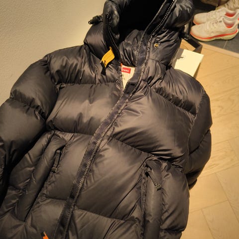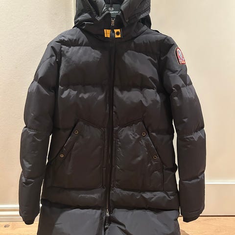Selger denne kjempe fine, ekstra lange dunjakken fra Parajumpers. Den er veldig god og varm. Har en dobbel glidelås foran, to glidelåslommer og justerbar hette og kant. Den er mørk blå og liten i størrelsen, xxs. Den er pent brukt💙❄️