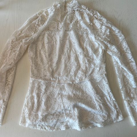Hvit bluse med blonder, Str. S