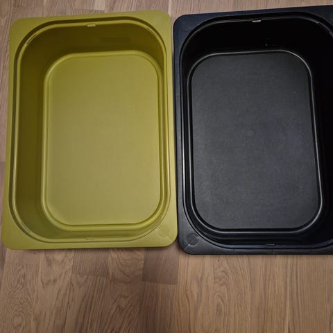To lave esker/kasser til Ikea Trofast-systemet. Mål: 42x30x10 cm. Nypris hos Ikea er 70kr for én eller 140kr for to.