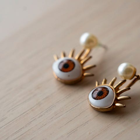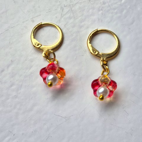 Unike øreringer med blå glassteiner, som legger seg rundt øreflippen