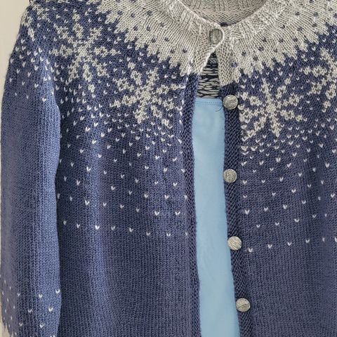 Vakker, hjemmestrikket ulljakke. S/M