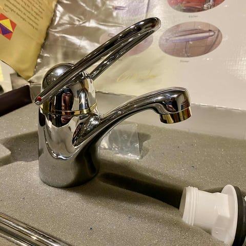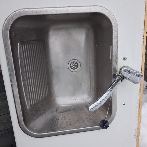 Kum brukt til vaskerom. Flekker/merker kan trolig vaskes bort, det er ikke forsøkt da den har stått lagret en god stund og dermed ikke vært i bruk. Se mål på bilder