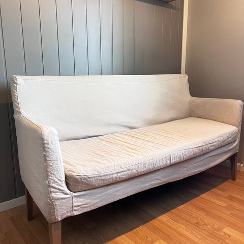 IKEA puff med oppbevaringsfunksjon i grått stoff. Puffen har et romslig oppbevaringsområde under setet, egnet for oppbevaring av ulike gjenstander. Passer til bruk i stue, soverom eller andre rom hvor ekstra sitteplass og lagringsplass er ønskelig.