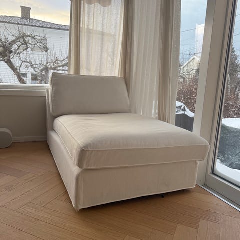 KIVIK sjeselong som er skikkelig deilig å ligge/sitte i. Perfekt om du ikke har plass til en full sofa.
