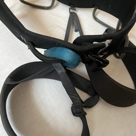 Black Diamond Momentum sele for klatring,m i rød farge. Designet for sikkerhet og komfort for barn opp til 40kg. Bilde av den blå er fra nett for vise bedre hvordan den ser ut. Den er veldig lite brukt. Oppbevart mørkt i god stand.