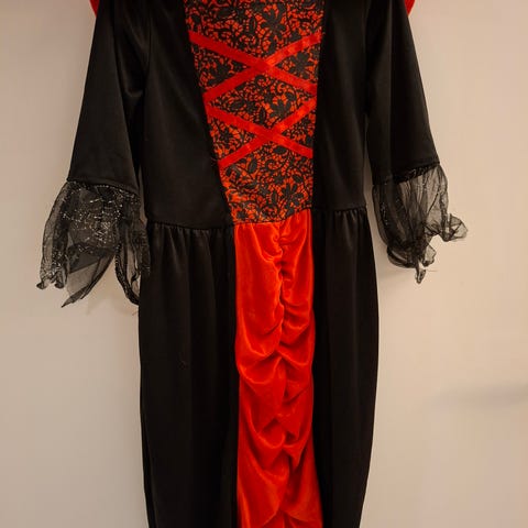 Komstyme - Halloweenkjole i str. 110-120 - med hatt.