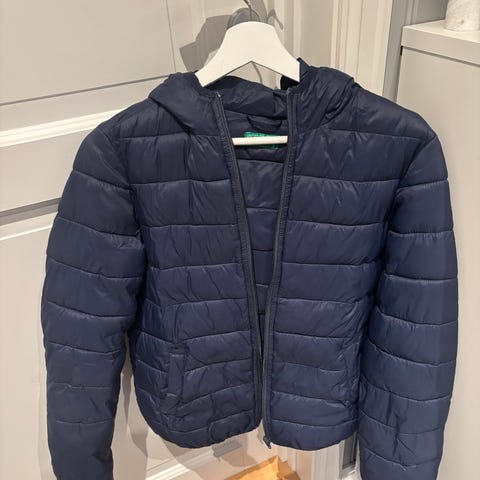 Benetton barn jakke i størrelse 150, unisex design. Jakken er blå og laget av polyester. Passer for barn i alderen 10-11 år.