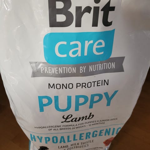 Selger 5 kg Brit care salmon puppy, grunnet intoleranse hos valpen vår. Kjøpte en 12kg sekk i september 2025, utløpsdato 01/2027.