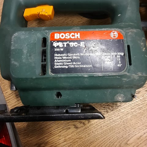 Bosch PST 54 PE stikksag med elektrisk motor. Verktøyet har justerbar hastighet og kan kutte materialer som tre, metall og plast. Lite brukt, alt fungerer.