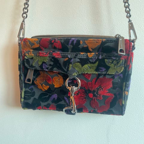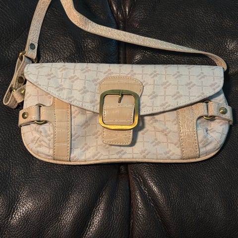 Pen liten veske i rosa/beige farge med slageskinnsmønster. 17x11cm.