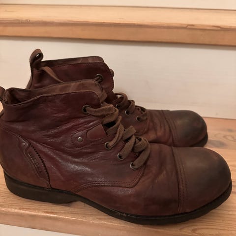 Stockholm Design Group vinterstøvler i størrelse 42. Støvlene er brune og laget av skinn. Egnet for vinterbruk med solid såle for godt grep. Lite brukt, da ungdommen har foretrukket å gå i joggesko:)