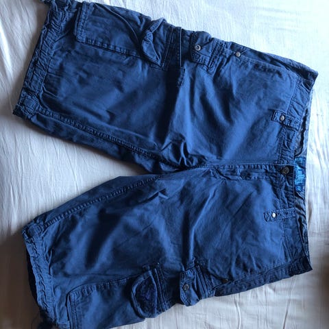 Beige cargo shorts fra Dressmann i linblanding. Størrelse 38/30. Aldri brukt.