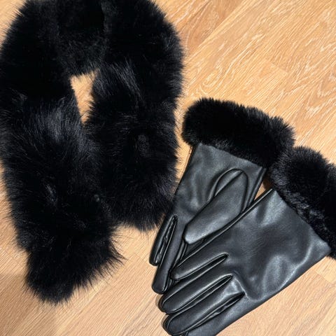 Lekre, sorte damehansker selges. Hele, pene og varme, men litt store til meg.