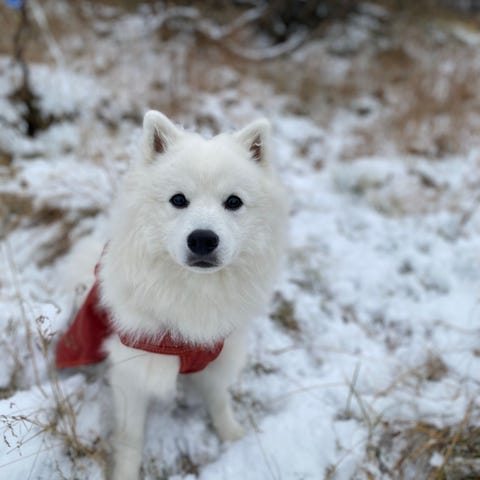 Vi søker et kjærlig og ansvarlig hjem til Mochi, en 1 år gammel, vakker samojedhann. Han er en vennlig og menneskekjær hund, rolig og balansert inne, ikke destruktiv. Utendørs er han mer aktiv og glad i turer og bevegelse, men ikke overdrevent energisk.
