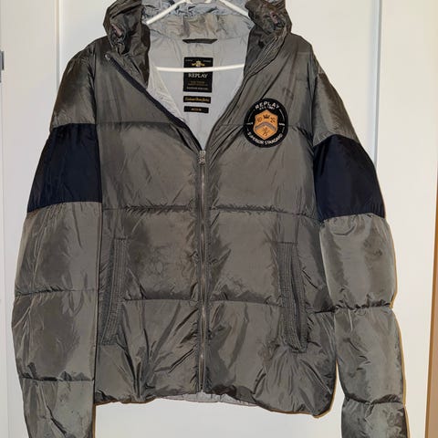 Peak Performance-dunjakke i størrelse M, farge blå. Jakken er fylt med dun.