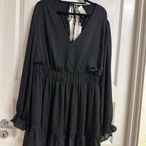 Love Lolita festkjole i størrelse XL, svart farge og laget av fløyel. Kjolen har lange ermer og dekorative perleknapper foran. Egnet for formelle eller festlige anledninger.