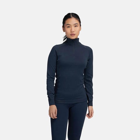 Genseren har en lett struktur og en høy hals med rysjekant, lange ermer med mansjetter.