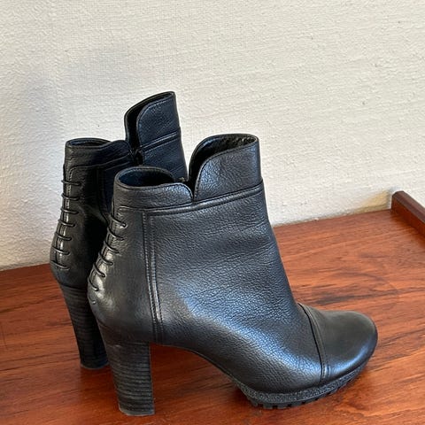 Helt nye damestøvletter i topp kvalitet. Støvlene har en klassisk design med glatt overflate og solid hæl. Ekte lær i hele støvletten. Foret. Egnet for bruk i kaldere vær og til ulike anledninger.