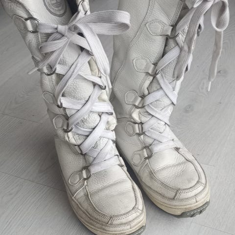 Timberland vinterstøvler Str 9W som tilsvarer 40 selges. Støvlene er gode og holder føttene dine varme på kalde vinterdager.