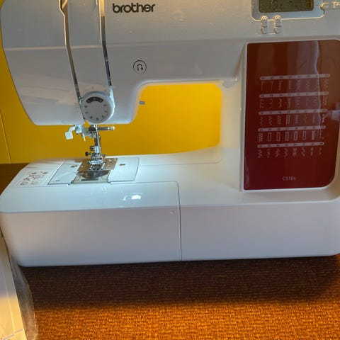 Brother Innov-is 560 symaskin med digitalt display og flere sømvalg. Leveres med tilbehør som forskjellige trykkføtter og annet utstyr for variert bruk.
