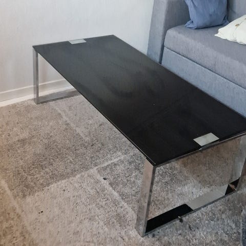 Glassbord med metallramme og to nivåer