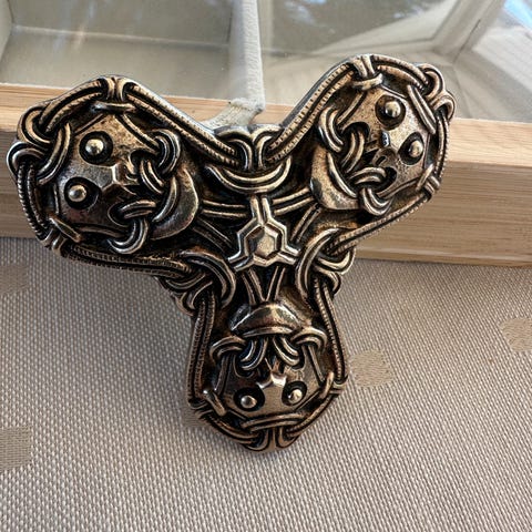 Vakker eldre sølvbrosje / nål med tradisjonelt mønster, kanskje til bunad?