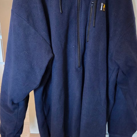 har glidelås på fronten og flere lommer med glidelås. Strl XXL