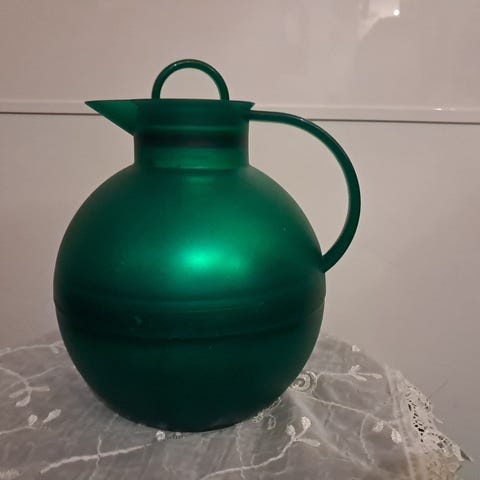 Ikea Behovd termoskanne med kapasitet på 1 liter. Kannen er grønn og har et klassisk design. Egnet for oppbevaring av varme og kalde drikker.