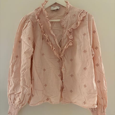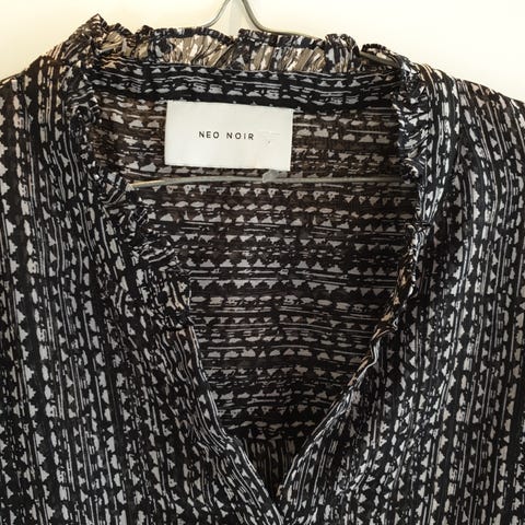 Neo Noir satin bluse skjorte. Noe slitasje på knapper, men de kan byttes eller evt tusjes over. Ny pris rundt 600/700