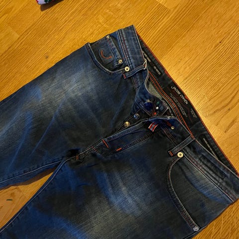 Selger disse fete Jacob Cohën buksene i str 33. De er veldig pent brukt og har ingen bruksmerker. De selges fordi de ikke passer lengre.