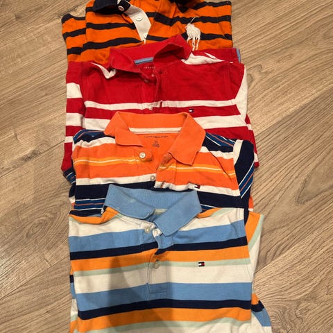 Selger 3 fine skjorter i str 116, den blå er fra Jean Paul, den rutete fra Tommy Hilfiger og den hvite fra Ralph Lauren. La merke til noen veldig små prikker på den hvite skjorten da jeg skulle ta bilder, ikke sett disse før, så har ikke prøvd å få de bort.